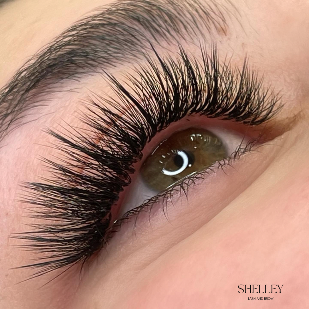 The trend of wet look lashes seems to be increasing in popularity in the lash world right now. The wet look is created by using narrow, almost closed volume fans. This look is great for creating texture and spiky looks. We wouldn’t recommend this look for someone with sparse lashes.